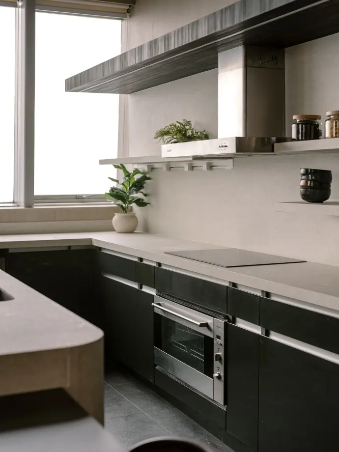 #TopshelfMNL cabinetry, @hardwaremuseum, and @inalco_official MDi from @moblerph converge in this @euniceellaine.interiors masterpiece to tell a story of quiet, sophisticated calm. Every detail in this renovated kitchen was curated to turn simple daily rituals into an elevated experience.